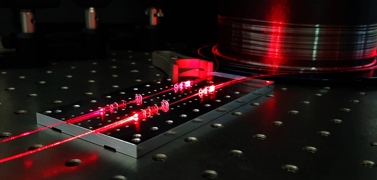 Deshalb bauen die Forschenden miniaturisierte Kollimatoren auf: Die hochpräzisen Linsen fangen das Licht an einem Faserausgang auf und lassen es parallel wieder austreten, noch bevor es sich zerstreut. Ist dieser Schritt einmal geschafft, kann das Licht mittels halbreflektierender Spiegel aufgeteilt und in den Ringresonator geführt werden. Am Ausgangspunkt wird seine Leistungsstärke gemessen und durch einen zweiten Kollimator zurück in die Faser geführt.